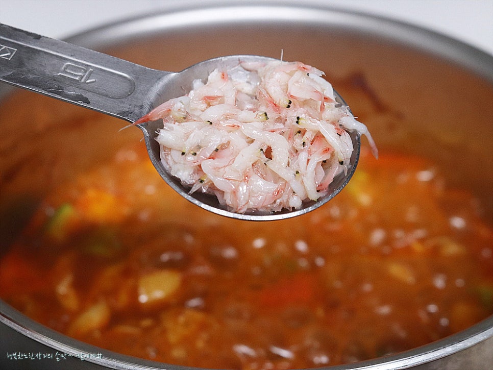 새우젓이 들어가야 돼지고기찌개가 깔끔해집니다.