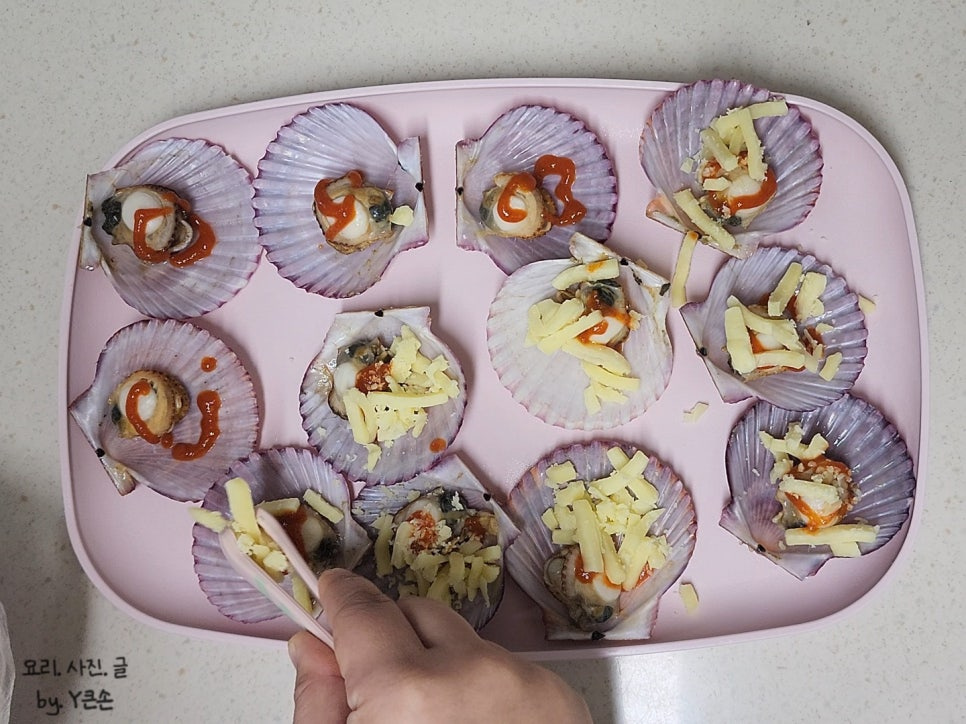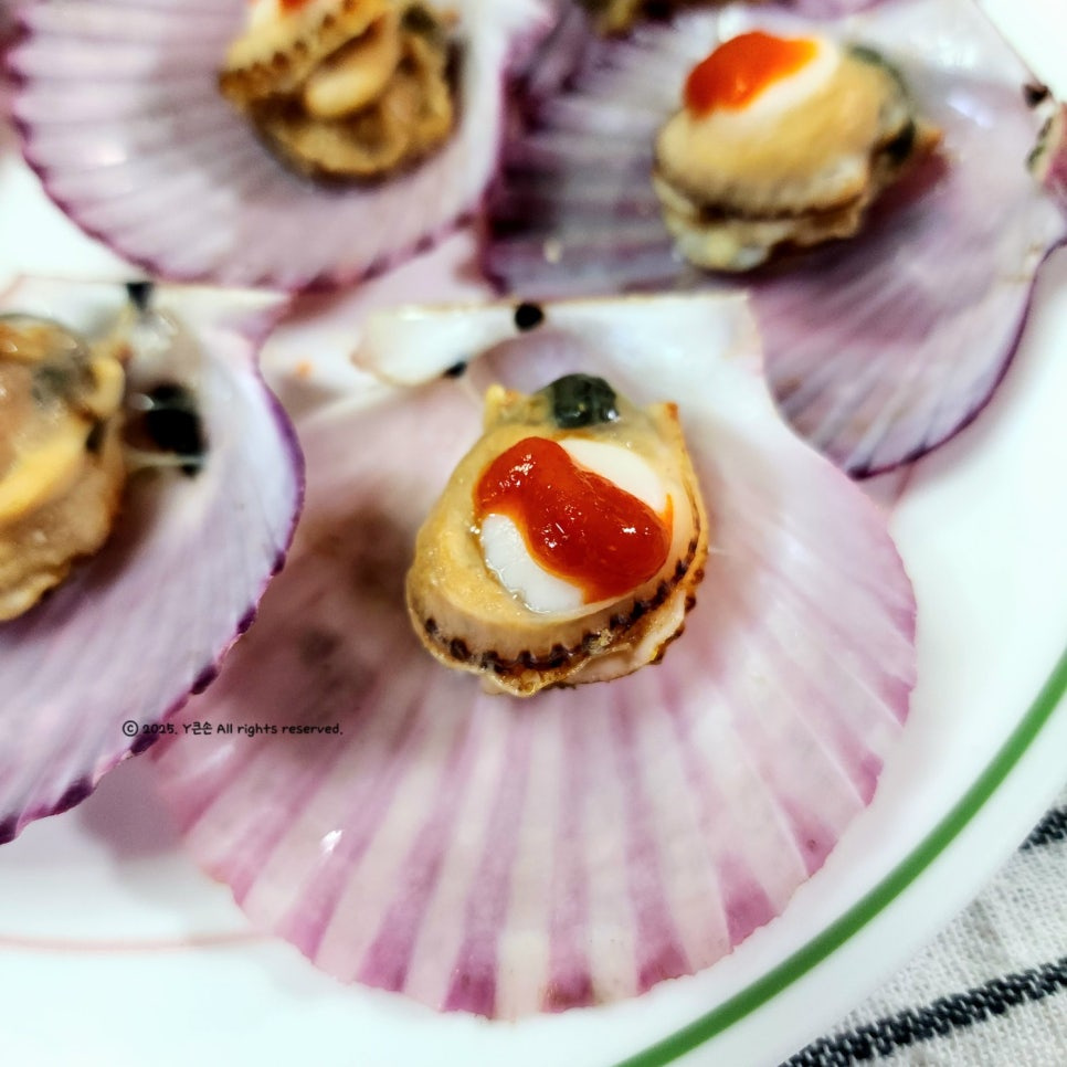 가리비 자체에도 수분이 나와서 물은 조금만 넣어주셔야 해요. 삼발이 위로 물이 넘치면 씻겨 나가 고유의 맛이 줄어요ㅠ