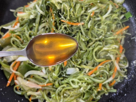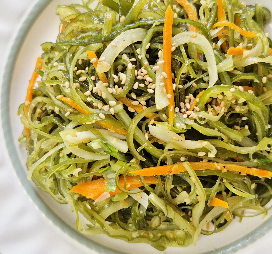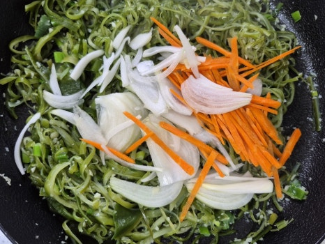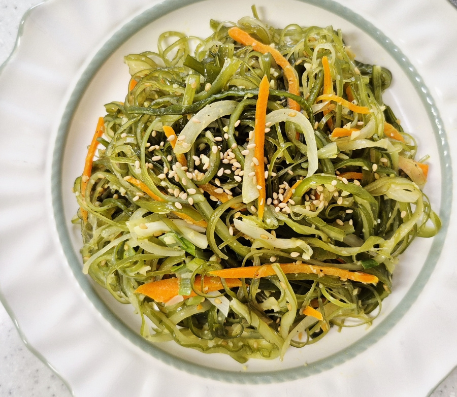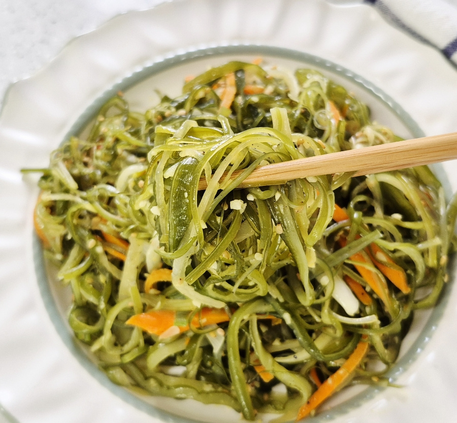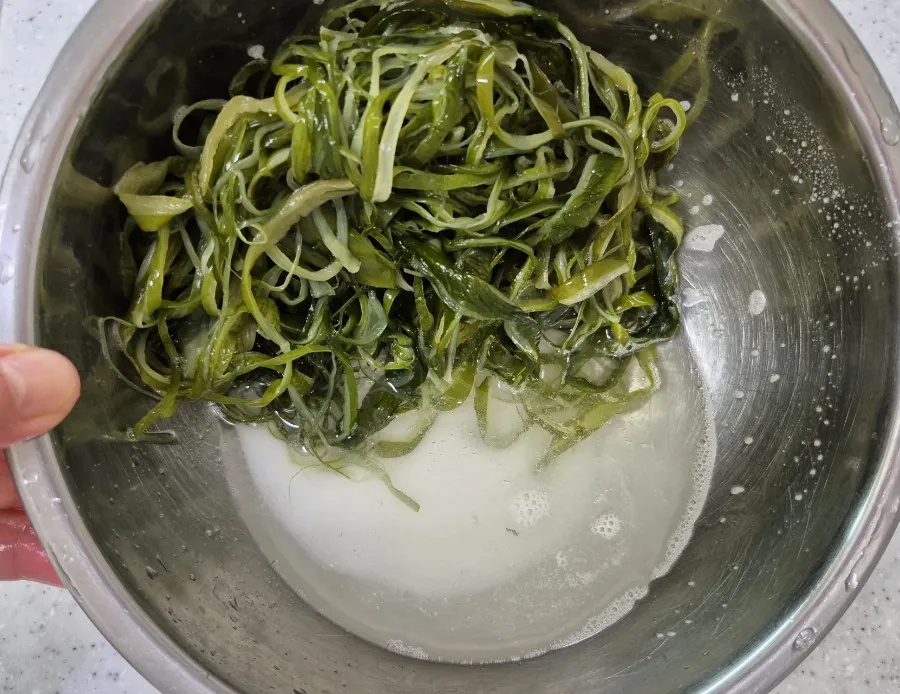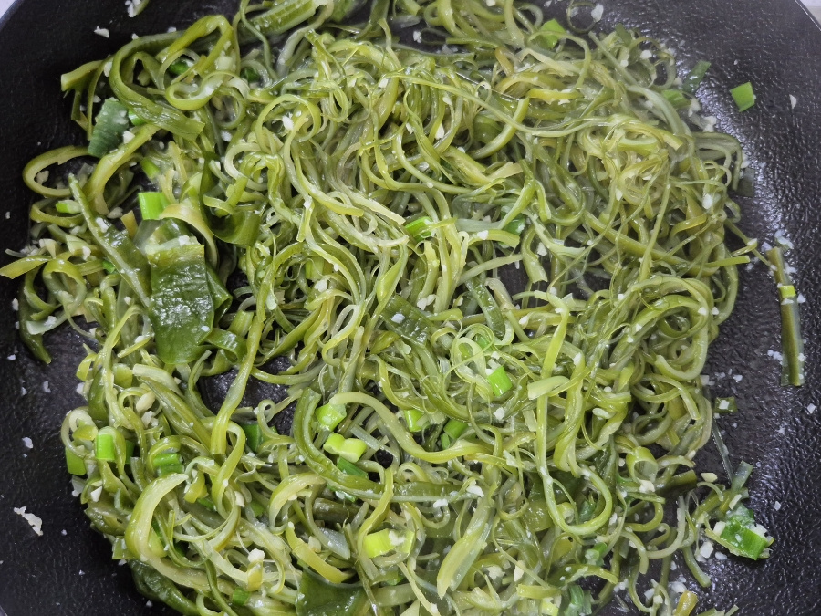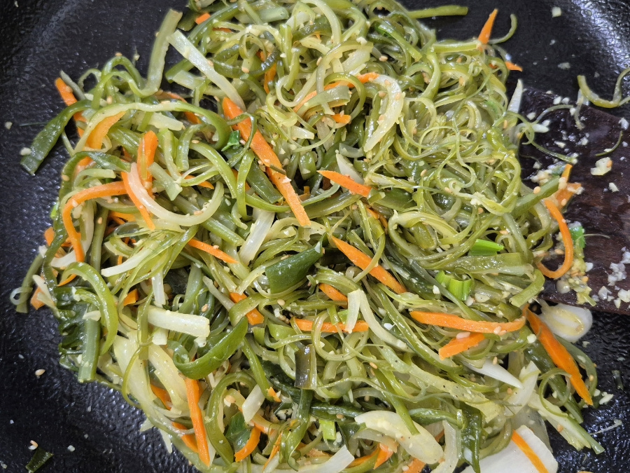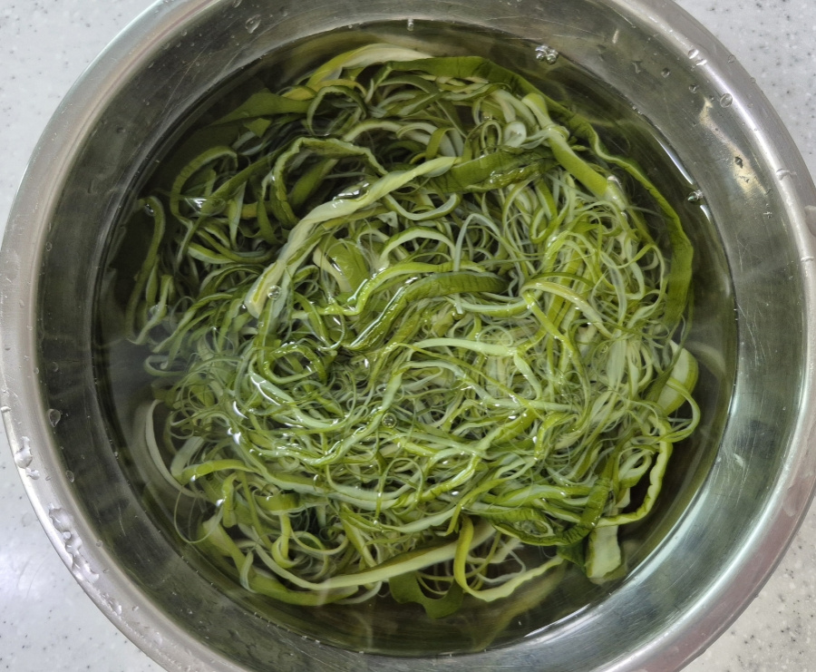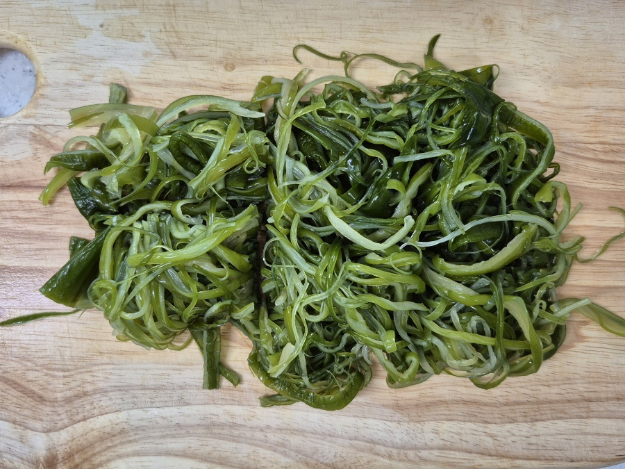 반찬가게에서도 인기 반찬인 미역줄기볶음, 볶기 전에 염장된 미역줄기의 짠맛을 꼭 제거해야 해요.