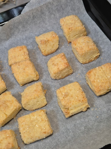 쌀가루로 만든 스콘은 밀가루를 사용한 스콘에 비해 부푸는 정도가 적어 간격을 좁게 놔주셔도 괜찮습니다.