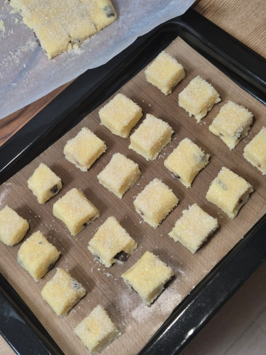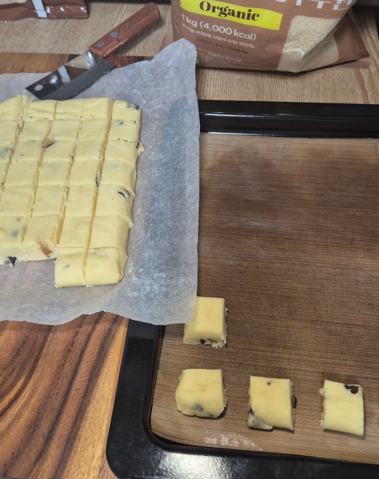 자를 크기로 먼저 칼로 반죽에 선을 긋고 잘라주면 편합니다.