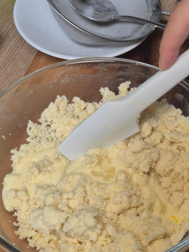 치대는 느낌보다는 주걱으로 갈라주는 느낌으로 반죽해 주시는 것이 좋습니다.