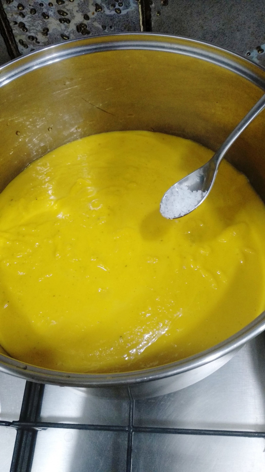 팔팔 끓이실 필요는 없어요. 죽이 튈 때 화상에 특히 유의해주세요.
