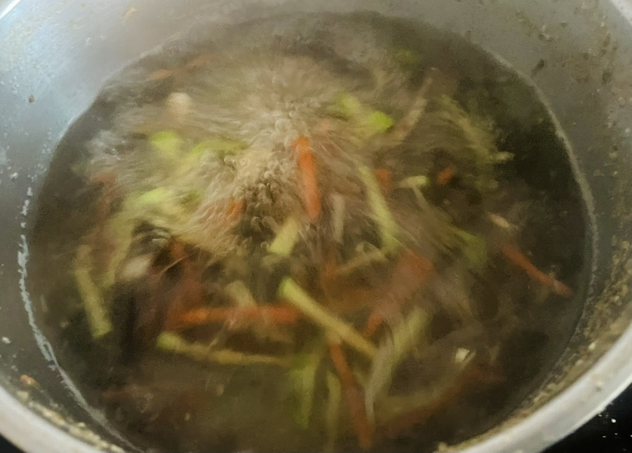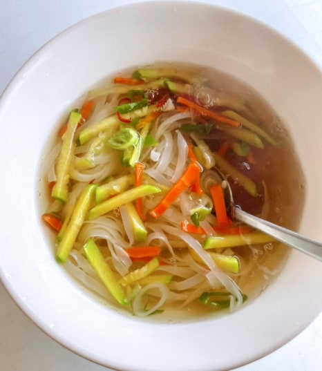 쌀국수를 활용하면 좋은 점은 따로 면을 삶아서 찬물에 헹구는 과정을 생략하고 바로 쌀국수에 육수 끓여 부어 주면 완성이라 조리 시간도 짧고 밀가루 음식이 아니고 글루텐프리 쌀로 만든 면이라 건강에도 더 좋고 속도 편한 요리예요.