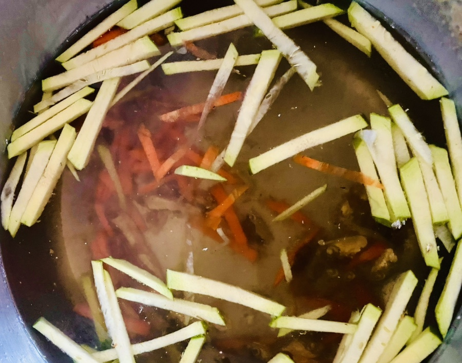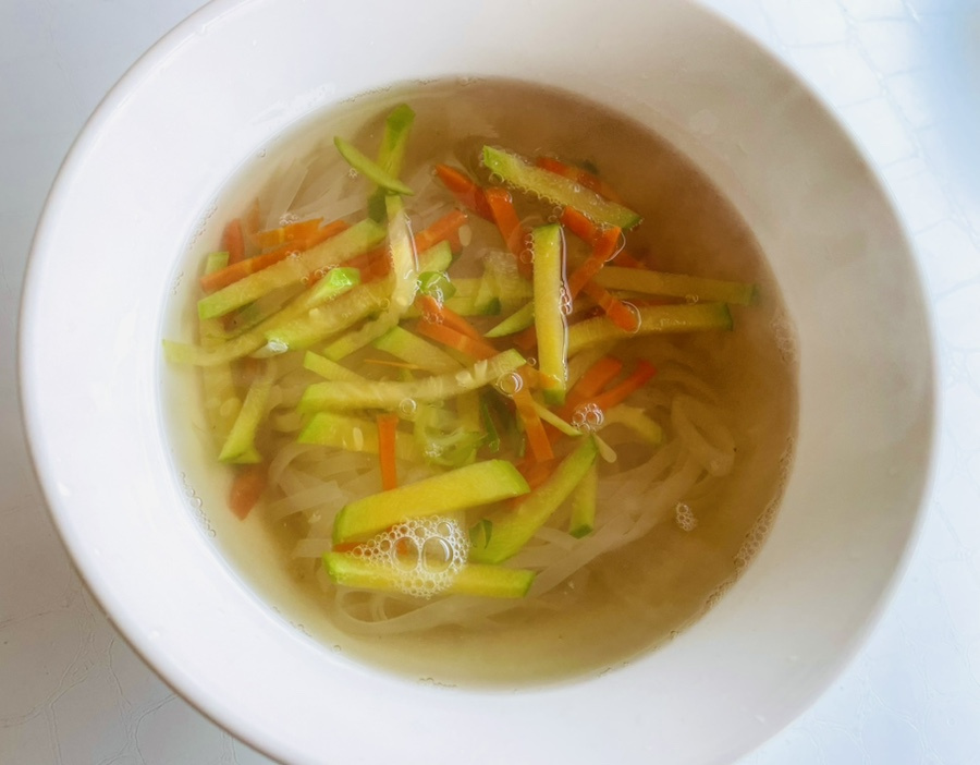 한식 스타일로 애호박을 채썰어 볶아서 고명으로 올리거나 계란 지단등을 올려주면 더 정성스러운 요리가 되겠지만 간단하게 육수에 야채를 넣고 끓여 채수가 우러난 잔치국수도 충분히 맛있어요.