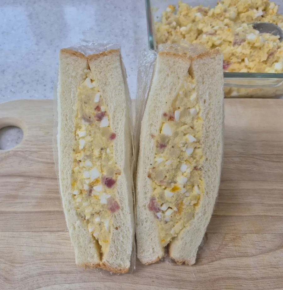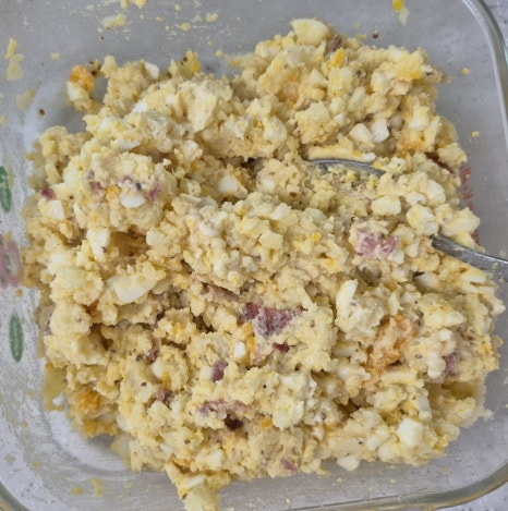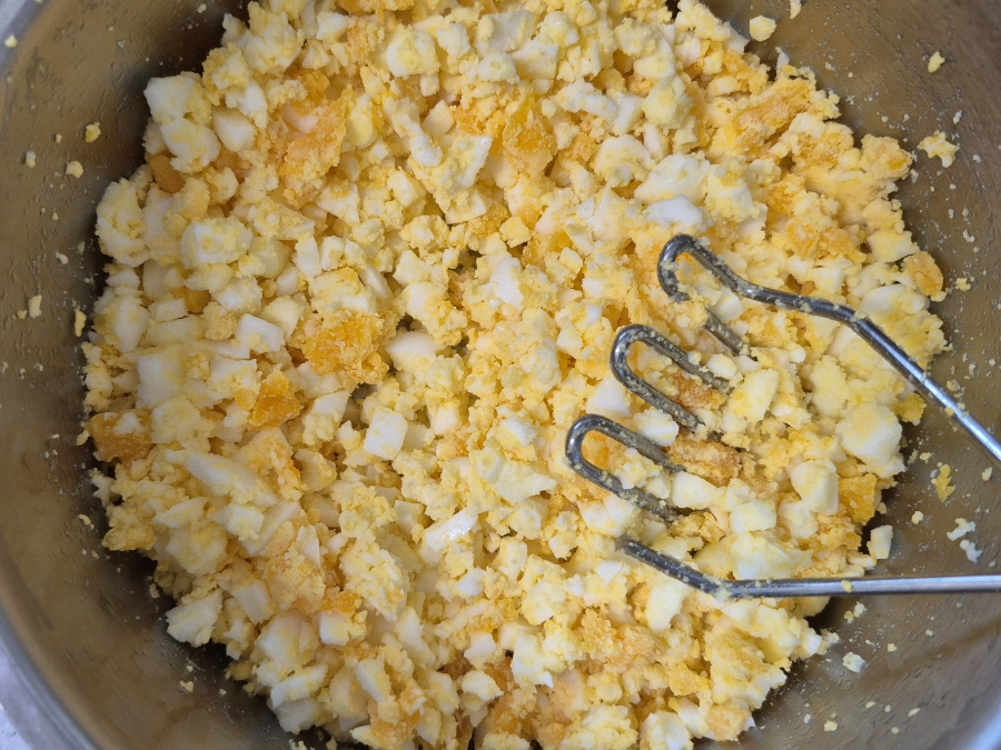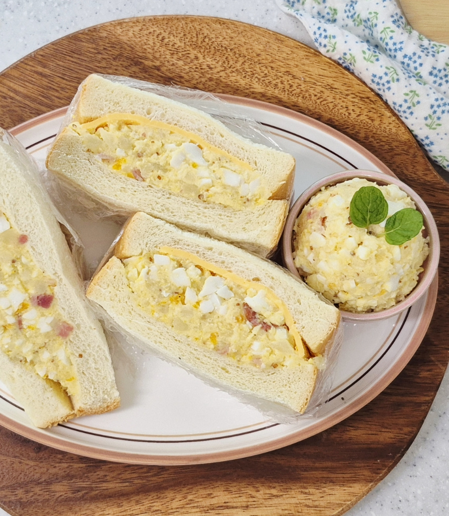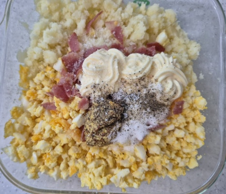 샐러드가 뻑뻑하면 마요네즈를 추가하고, 간이 부족하면 소금을 소량 더해주세요.