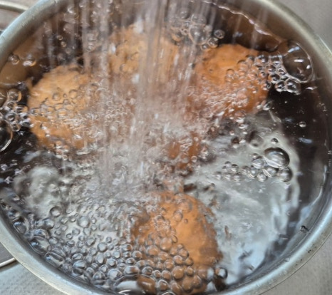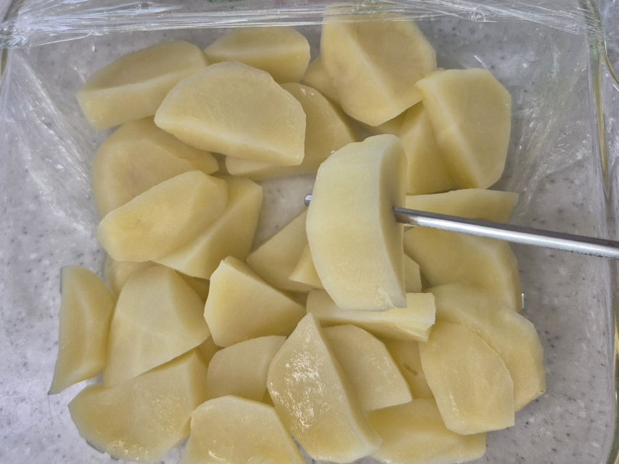 랩으로 밀봉한 뒤 증기 배출 구멍을 여러 군데 뚫어 주세요.