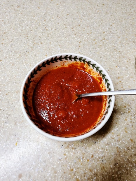 양념해 둔 매콤한 양념장을