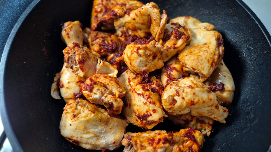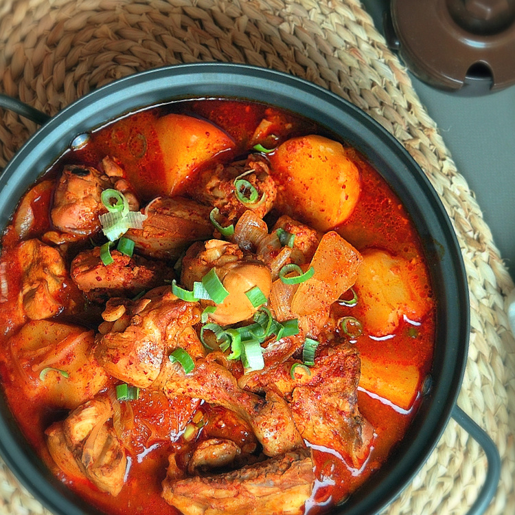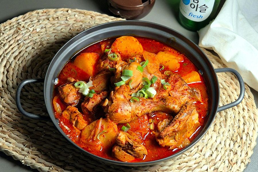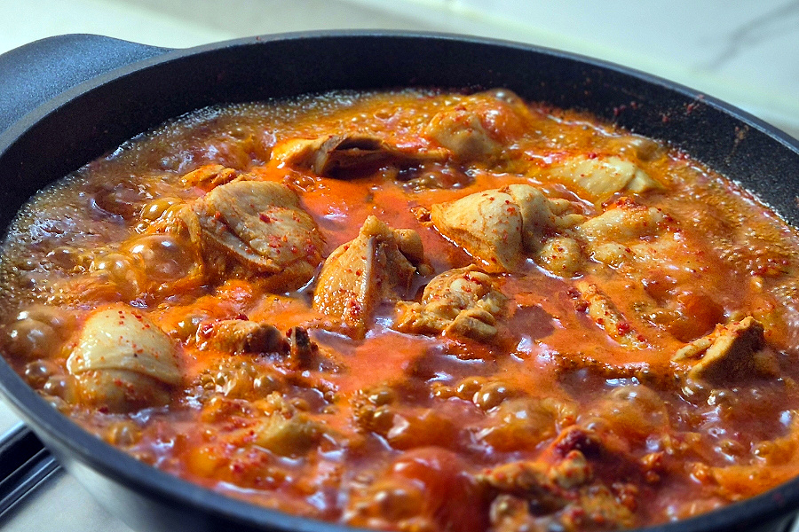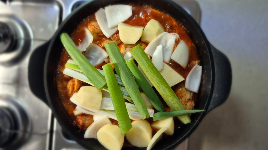 물 양은 딱히 정해진 건 아닙니다. 저는 처음부터 물을 넉넉하게 잡아줬는데요, 국물 좋아하시는 분들은 닭이 잠길 듯 말 듯 물을 부어주시고 그게 아니라면 물 을 적게 넣고 필요에 따라 중간에 추가해서 조절하는 것이 좋습니다.