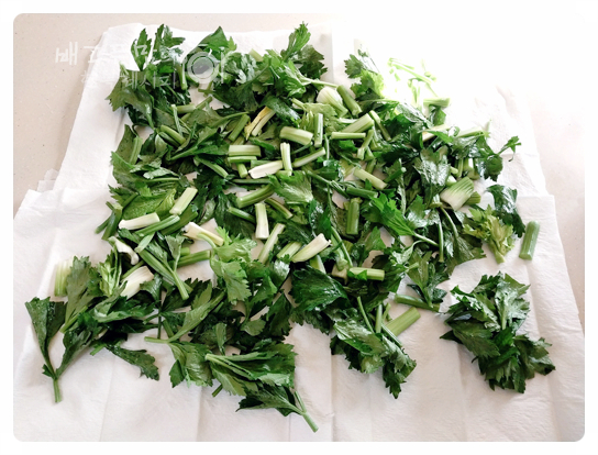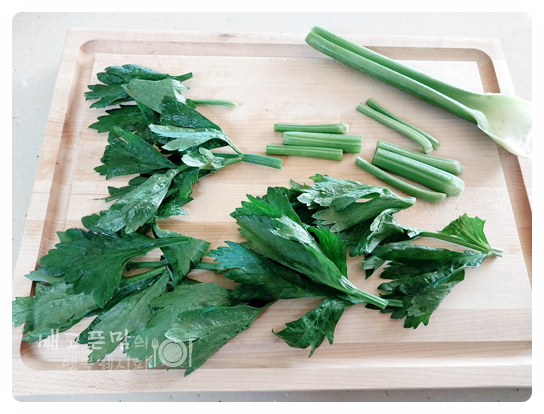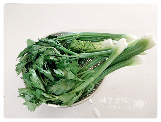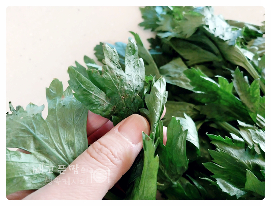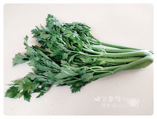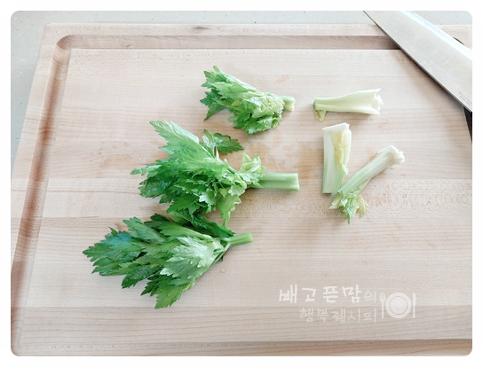 그리고 샐러리는 잎과 줄기를 한 입 크기