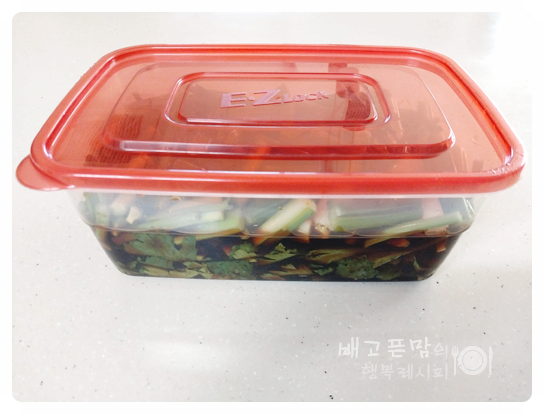하룻밤 지나니 샐러리가 소스에 푹 잠깁니다.