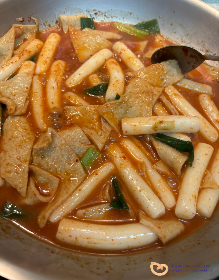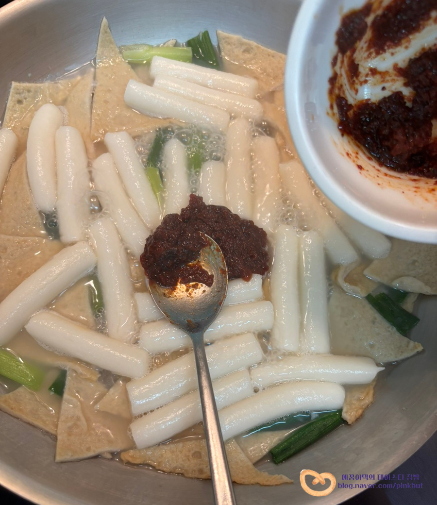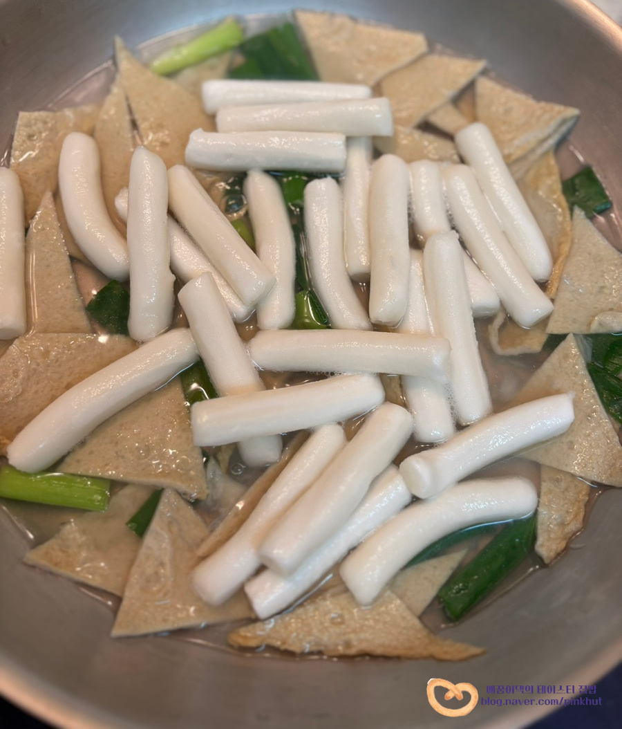 대파와 어묵을 넣고 육수를 내는 것이 포인트! 대파와 어묵은 떡볶이랑 떼려야 뗄 수 없는 조합이죠. 어묵육수를 내어 끓이니깐 조미료 없이도 감칠맛이 풍부했어요