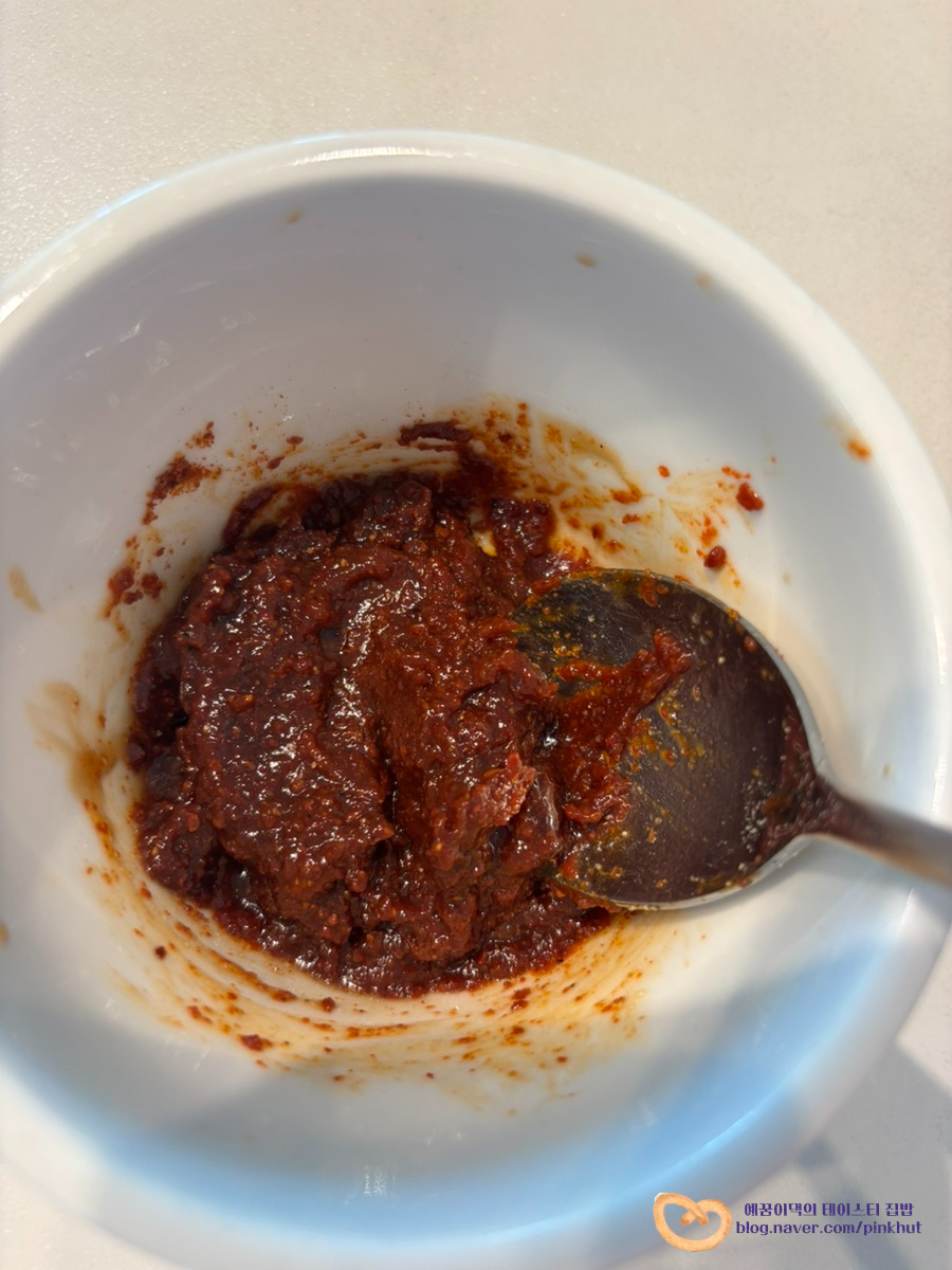 완성한 소스는 한꺼번에 넣지 않고 조금 덜어 놓고 입맛에 따라 추가하셔도 좋아요