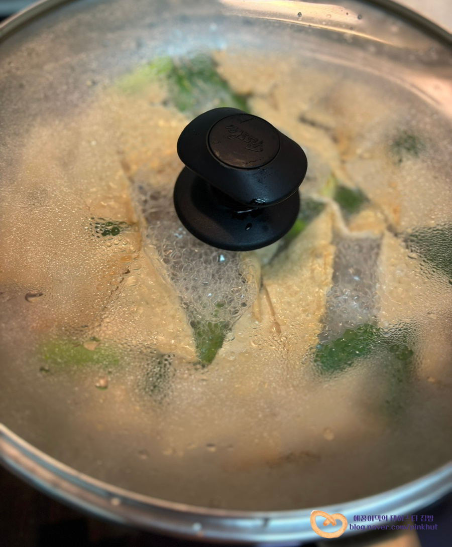 보글보글 끓이면 어묵육수 완성이에요. 맹물로 끓여도 맛있는데 이렇게 달큰하게 우려낸 대파 어묵육수에 떡볶이를 끓이면 얼마나 맛있겟어요?ㅎㅎㅎ