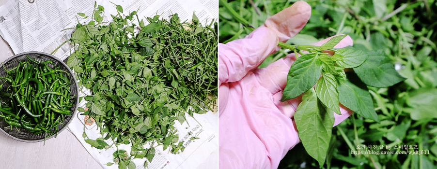 고춧잎은 벌레가 많은데 고춧잎 다듬으면서 보니 벌레 먹은 것도 거의 없고 깨끗하더라고요