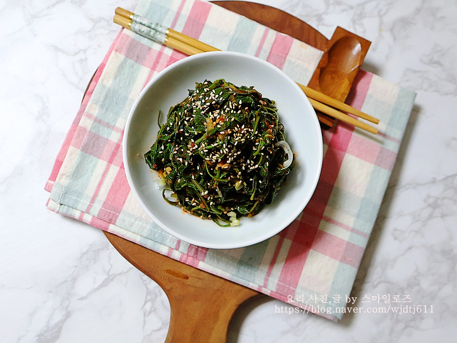 오늘은 된장이 아닌 고추장무침으로 조금 무쳤어요