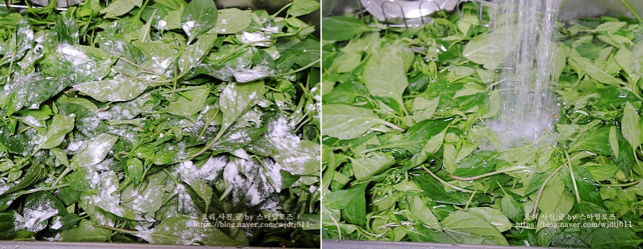 베이킹소다에 담갔다가 2번 씻어 건진 후 식초 푼 물에 5분 더 담갔다가 흐르는 물에 한번 헹구었어요