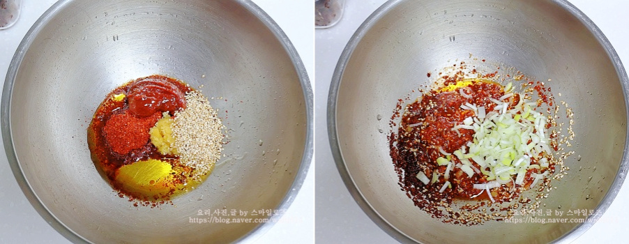 고추장 1큰술, 고춧가루 1큰술, 다진 마늘 0.5큰술, 매실청 1큰술, 들기름 1큰술, 통깨 1큰술,