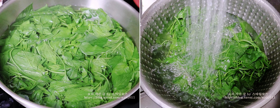 제가 손질한 고춧잎은 연해서 30초만 데쳤어요