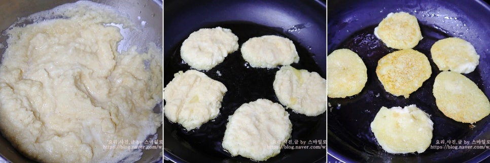 홍 감자로 갈아서 만들었더니 감자전 색이