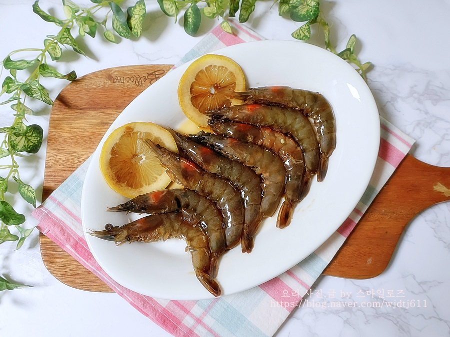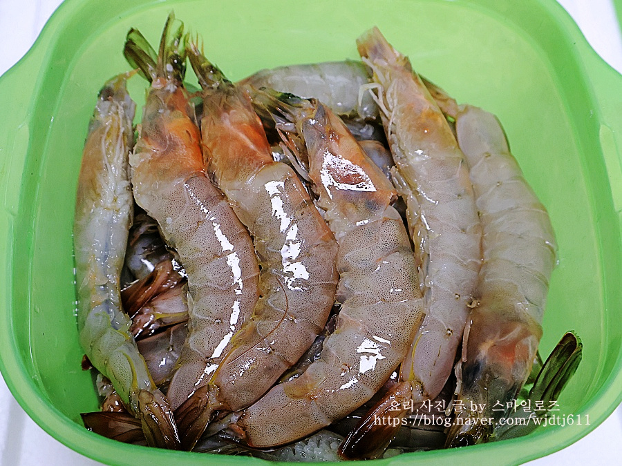 감칠맛 나는 새우장 만들기 위해 깨끗하게 손질한 새우 준비했어요