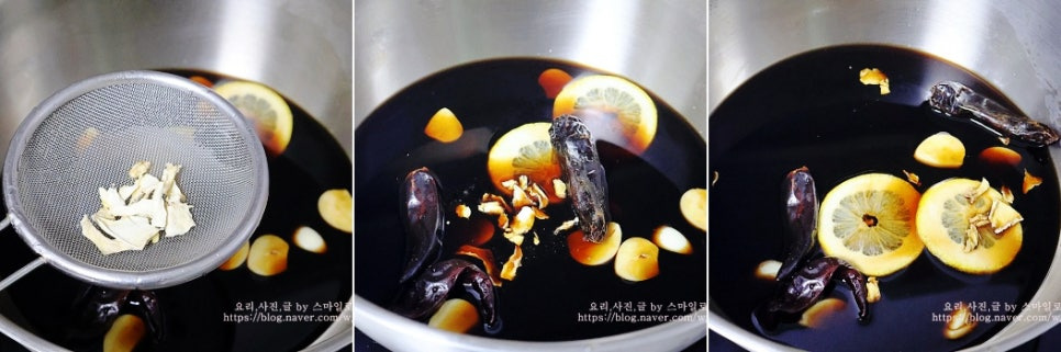2~3일 지난 뒤 간장만 냄비에 붓고 다시 한번 휘리릭 끓여
