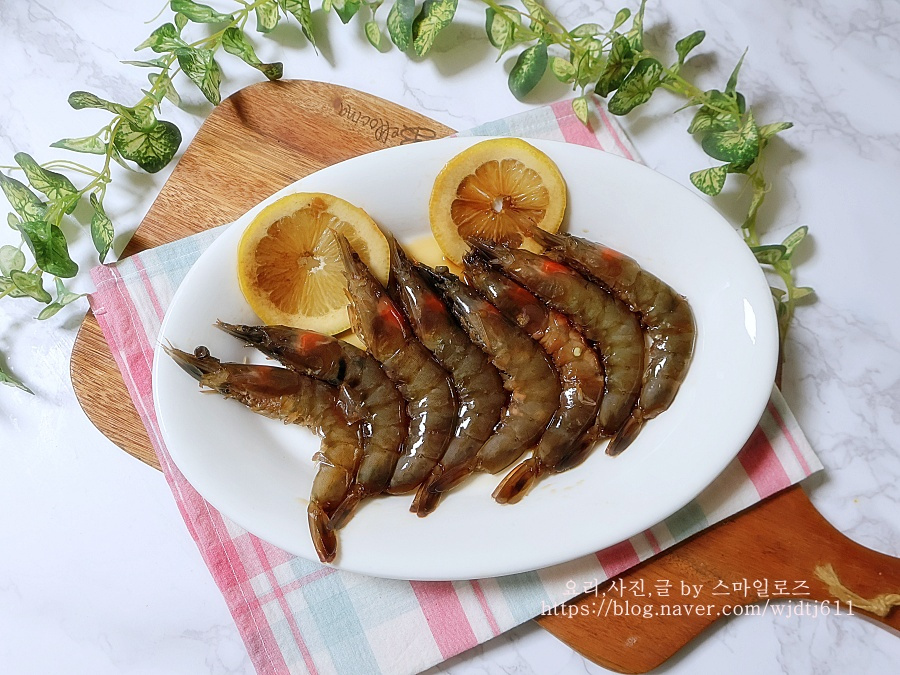 새우 손질해서 일부는 냉동실에 넣고 일부는 소금구이해서 먹으면서