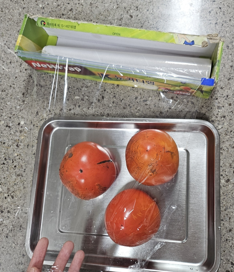 3. 실온에서 5~7일 정도 두면 점점 말랑해지며 홍시로 변합니다.
