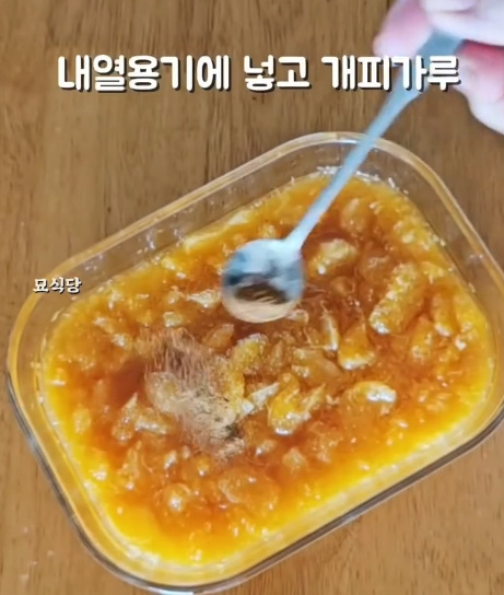 식힌 후 냉장보관하면 완성! 알알이 과육이 살아 있는 건강 감귤잼이에요.