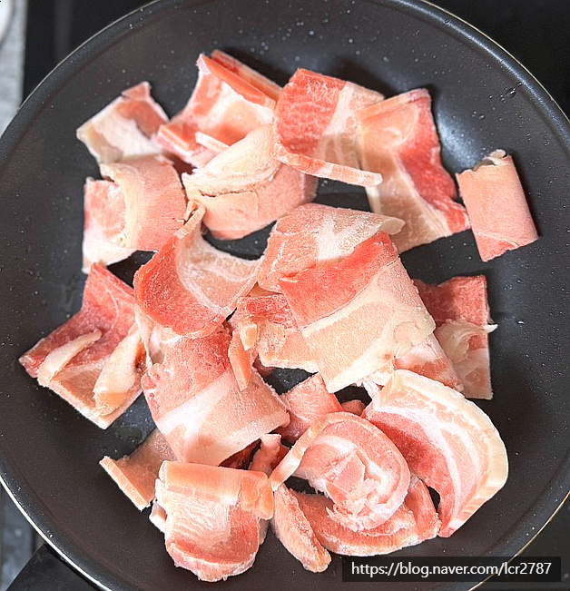 팬을 달궈 대패 삼겹살 200g을 넣고
