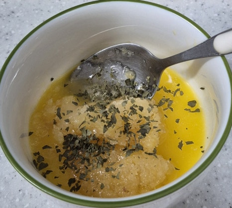 다진마늘 2스푼 , 설탕 1/2스푼 , 올리고당 1스푼 , 버터 30g , 파슬리가루