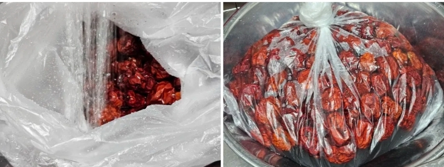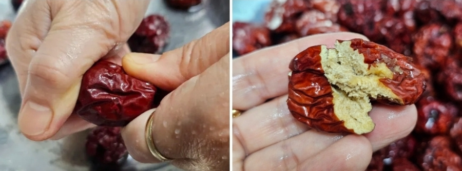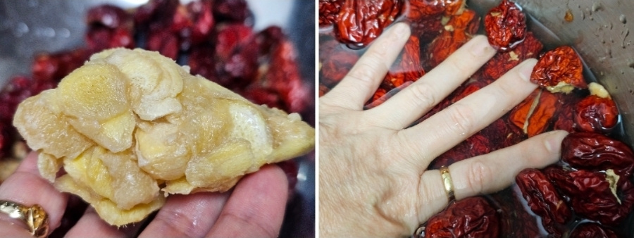 물은 재료가 충분히 잠길 정도로 부어주면 되는데요. 가벼워 물에 뜨니 손을 넣어 봤을 때 반 이상 잠기면 된답니다.