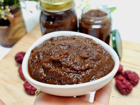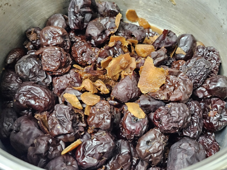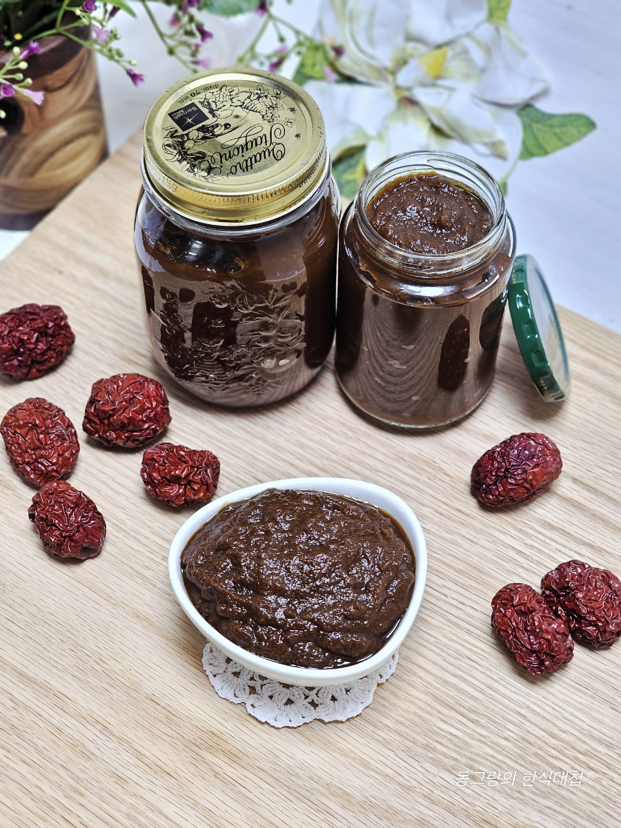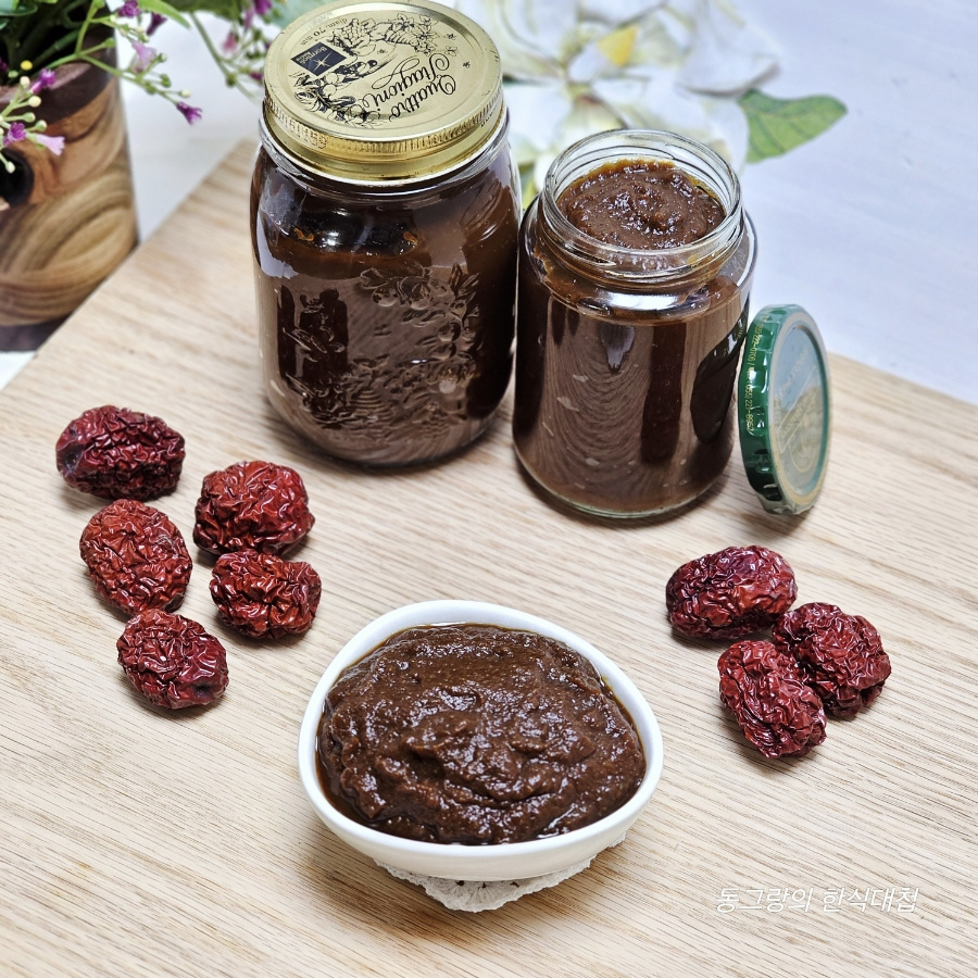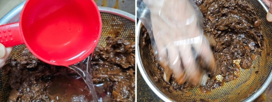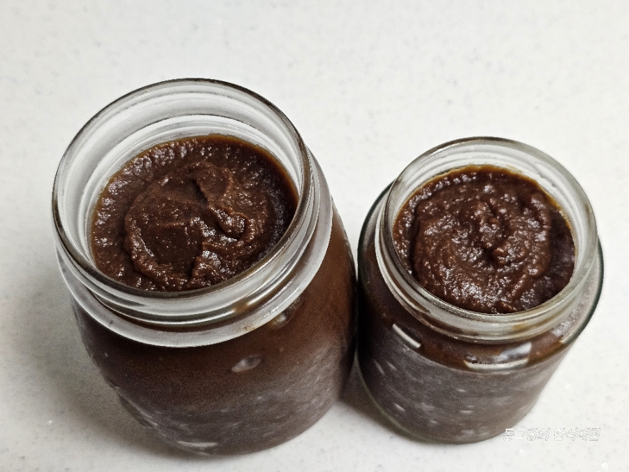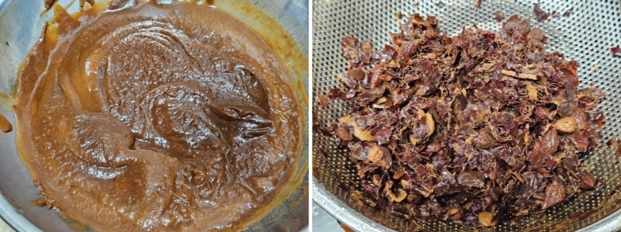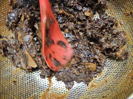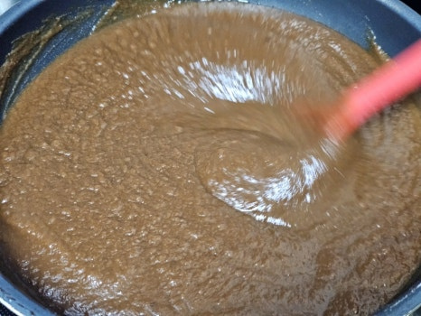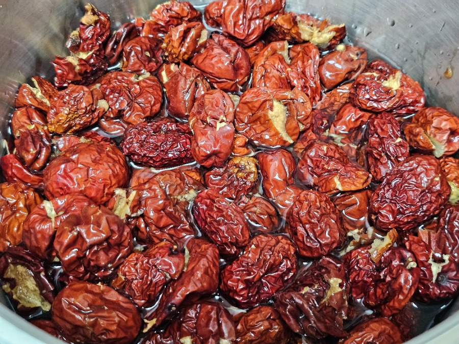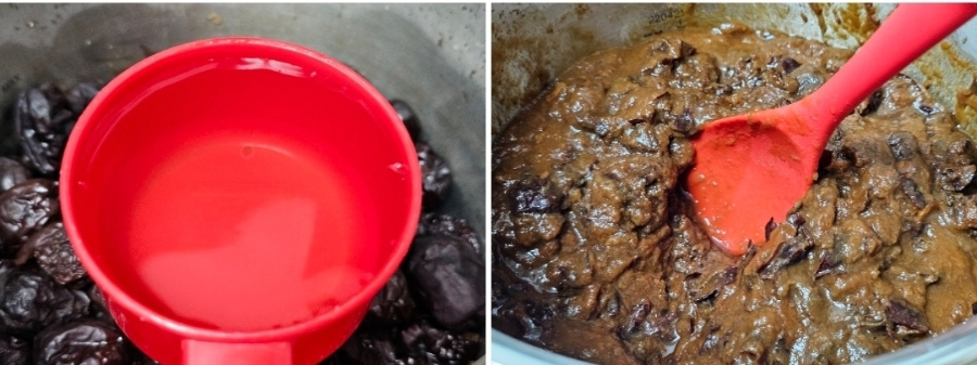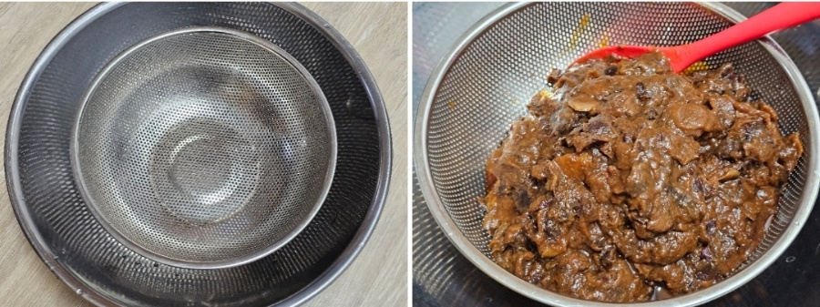 이때 물기가 없으면 물을 조금씩 추가해 가며 과육을 내려 줍니다. 저는 삶은 다음 물을 총(1리터) 5 컵 추가해 주었어요. 물 양이 많으면 더 졸이면 되니 신경쓰지않아도 되고 과육이 잘 내려지도록 물 추가하세요.
