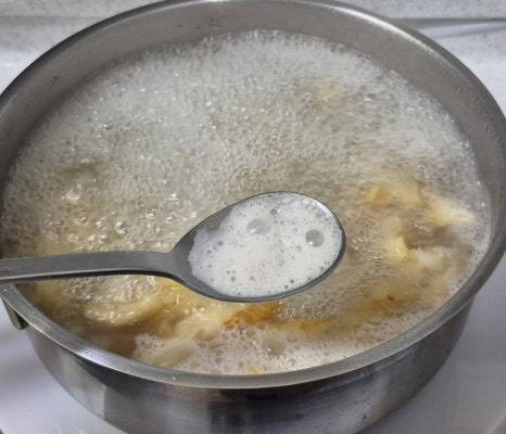 불린 물은 버리지 말고 육수에 활용합니다.