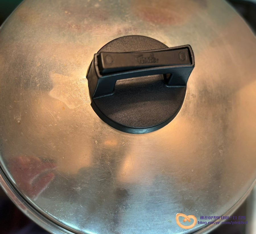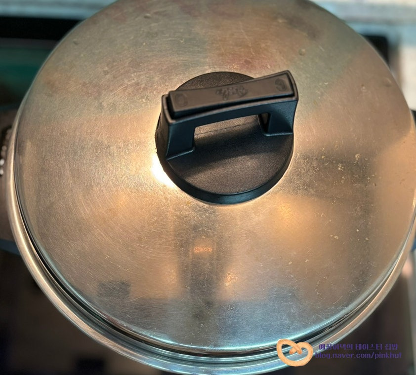거품을 정리했으면 중불로 줄이고 뚜껑 닫아 30분간 끓여주세요.