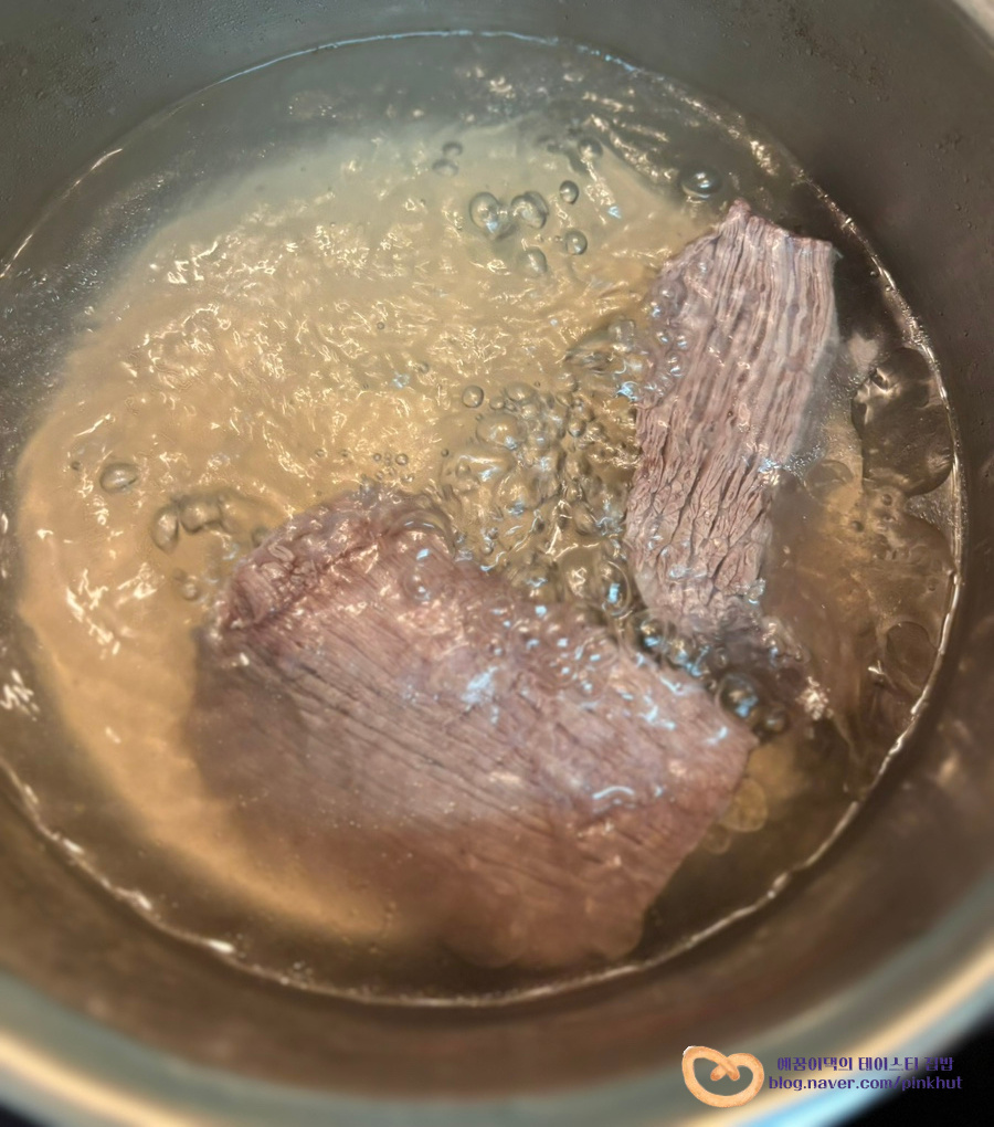 30분이 경과한 후 고기가 푹 잘 삶아졌죠?