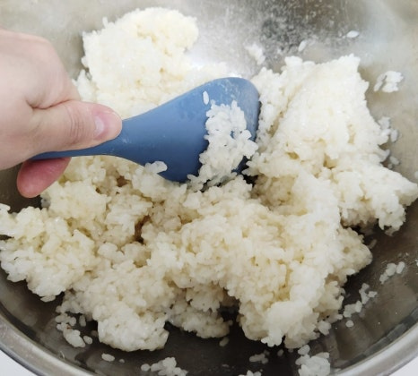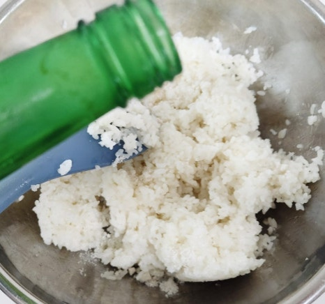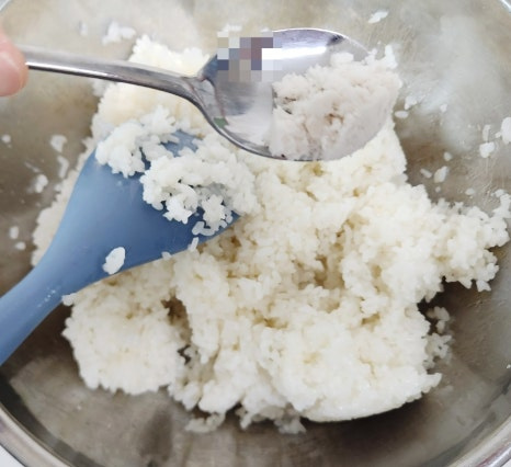 밥 약 8공기를 준비해 주세요. 여기에 소금 0.5T를 넣고 참기