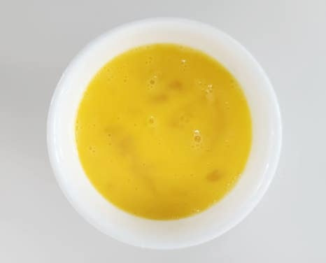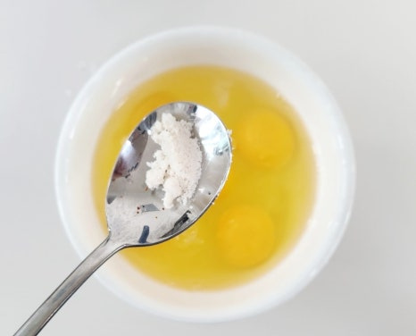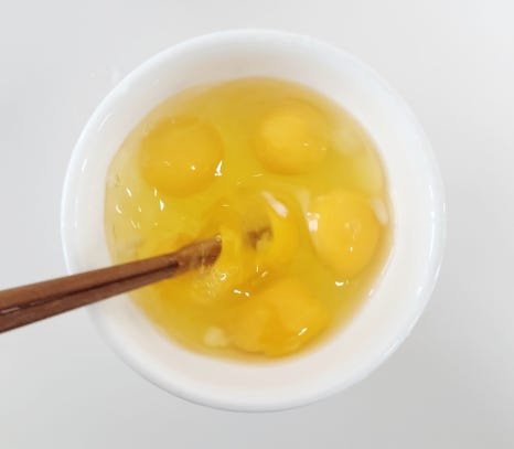 계란 다섯 개를 볼에 깨서 소금 0.5t을 넣고 잘 풀어 주세요.