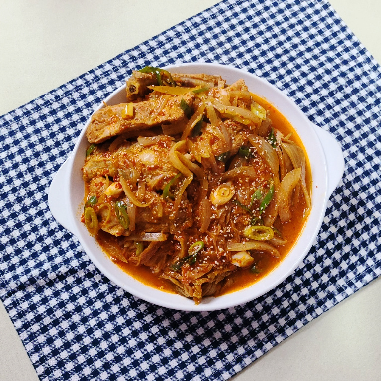 (얼핏보면 돼지고기 양이 적은거 같지만 묵은지와 함께 끓이면 양이 넉넉하여 둘이서도 충분히 먹을 수 있어요)