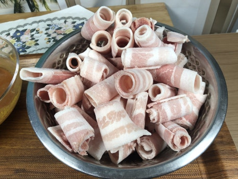 돌돌말린 삼겹살을 살살 풀어주면서 핏기가 가실때까지 익혀줍니다.
