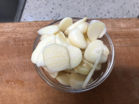 마늘(10알)은 전부 편마늘로 썰어줍니다.