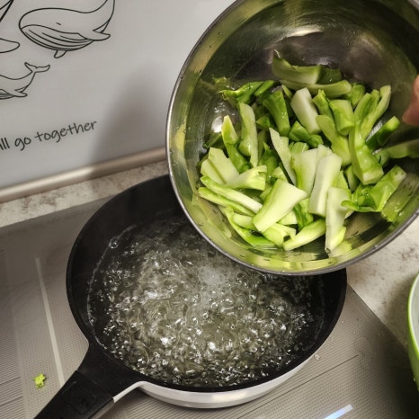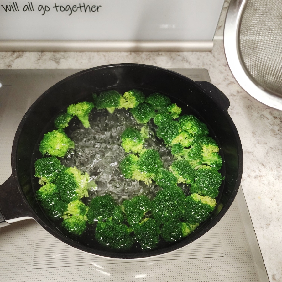 물이 끓으면 브로콜리를 넣으면 되는데 1분~1분 30초 정도 넣어서 익히고 건져주세요