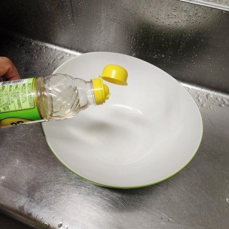 아이 입에 들어가는 사이즈로 브로콜리를 잘라 식초 2스푼과 소금 2스푼을 넣은 물에