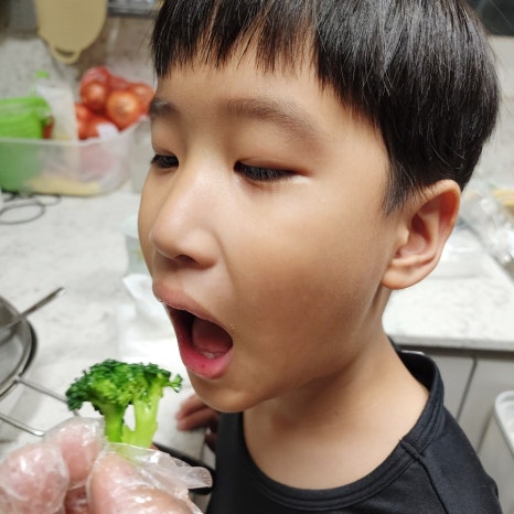 별로 좋아하지 않지만 아빠인 제가 해주는 브로콜리 반찬은 맛있게 잘 먹어 줘요.