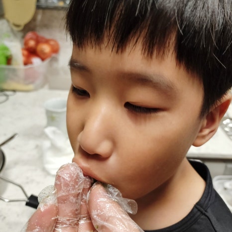 요리하는데 아들이 와서 입에 넣어줬더니 맛있게 잘 먹었어요.