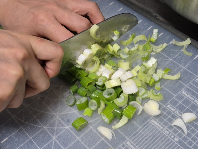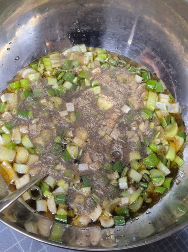 2. 보울에 돼지갈비 양념 재료와 대파를 넣고 고루 섞어주세요.