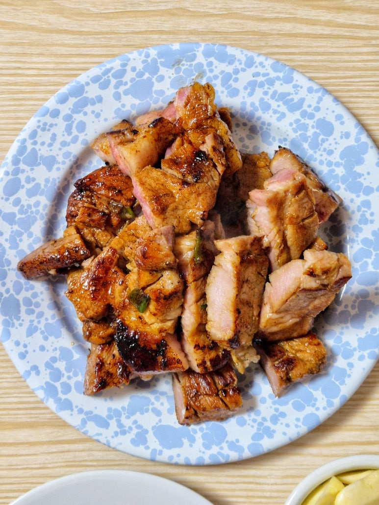 기름을 두르지 않으면 구운 고기가 아니라 찐 고기가 되어버립니다~