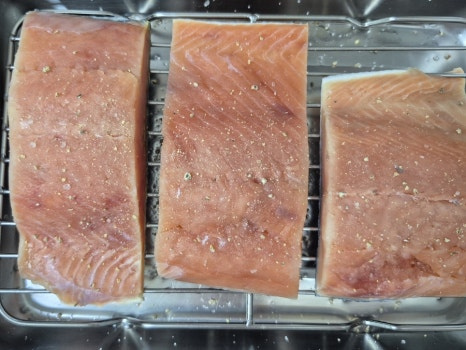 ✔️냉동 연어는 안쪽까지 완전히 해동한 뒤 물기를 제거해야 구우면서 물이 생기지 않아요.