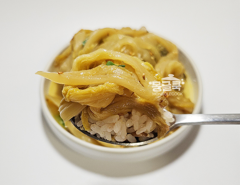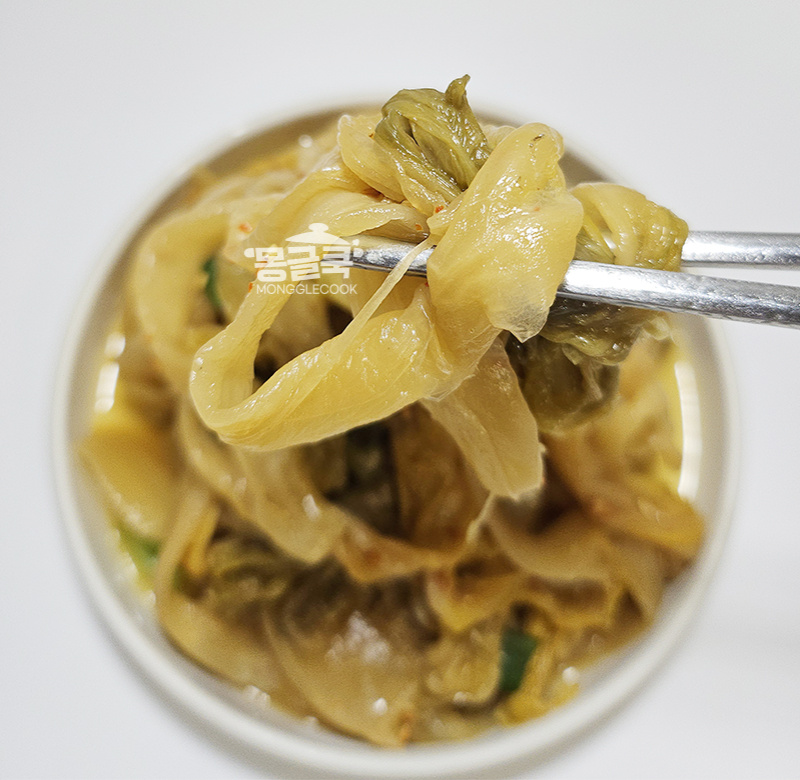 이 과정에서 시큼한 향도 한 번 줄어들기 때문에 부담 없이 먹을 수 있어요.