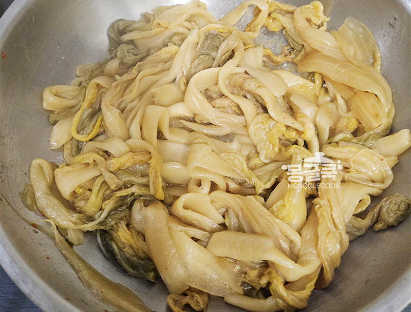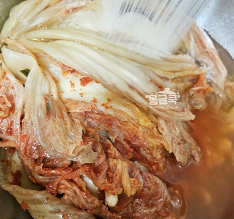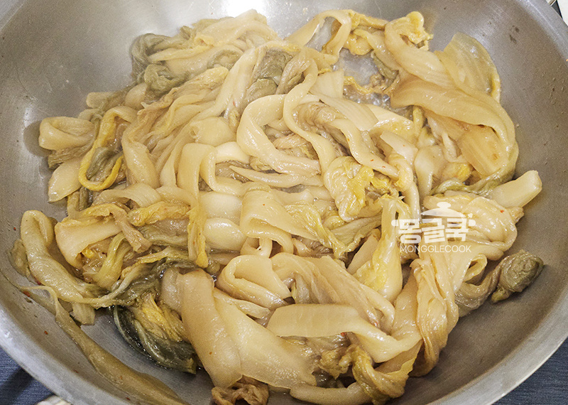 묵은지 특유의 산미가 부드럽게 정돈되는 순간이에요.